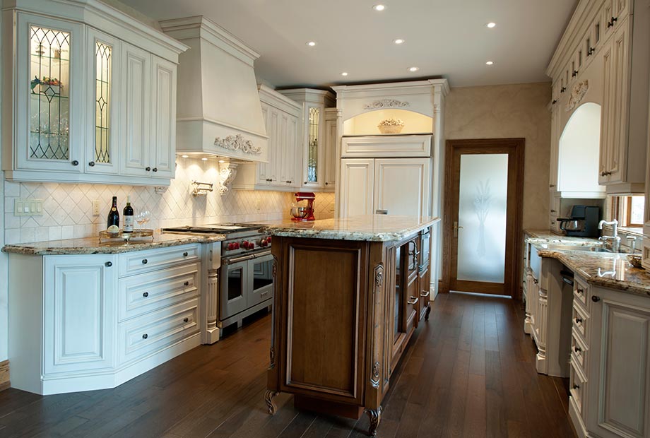 We began by creating space through the removal of the Florida style lighting and taking full advantage of the 9 1/2' ceiling to accommodate the stunning new cabinetry.