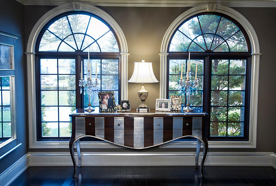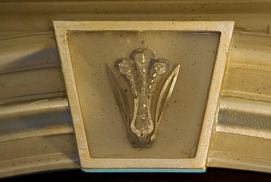 Illustrates the crystals repeated from the chandelier and used as decorative inserts for both Keystone details on the Palladian Window frames.