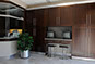 A sophisticated colour palette of soft greys with brushed nickel accents was chosen, punctuated with custom cabinetry in dark espresso brown.