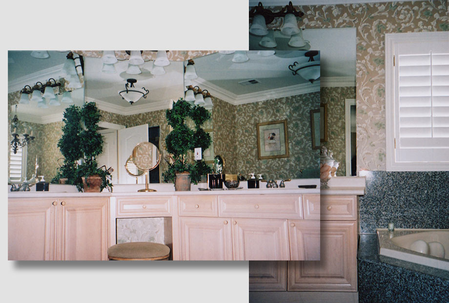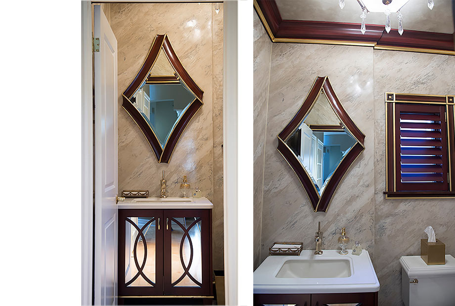 The design inspiration came from the exquisite, sculptural detail of the “Christopher Guy” mirror over the vanity