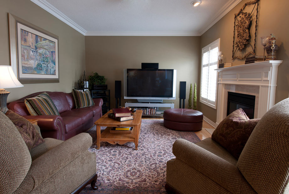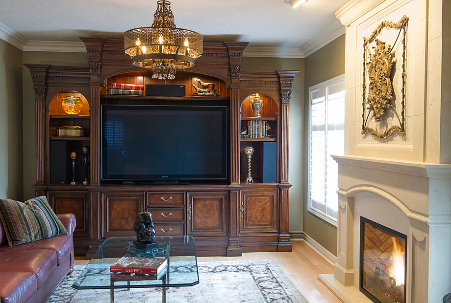 The most dramatic changes to this room were the re-construction of the fireplace and the procurement of housing for the 73” T.V.